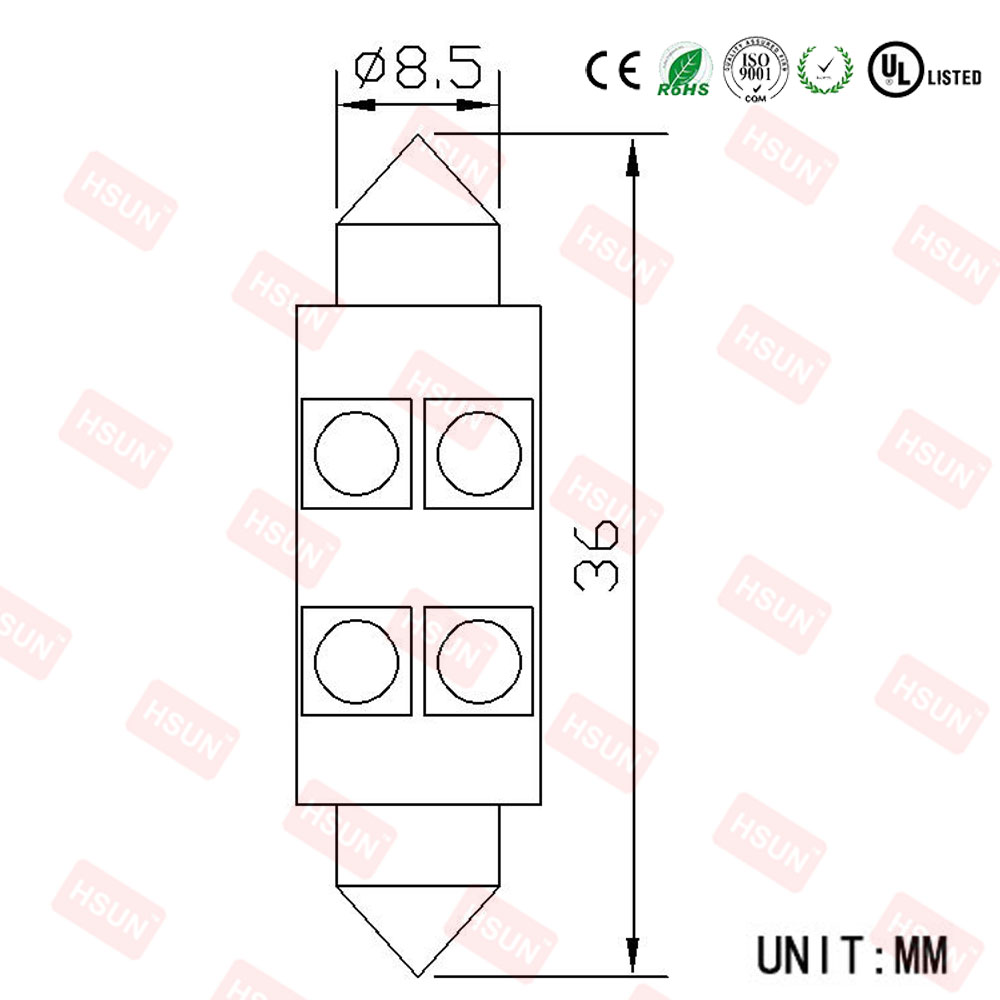 | Item Name: | HSUN-C5W 4 LED SMD5050 (36MM) |